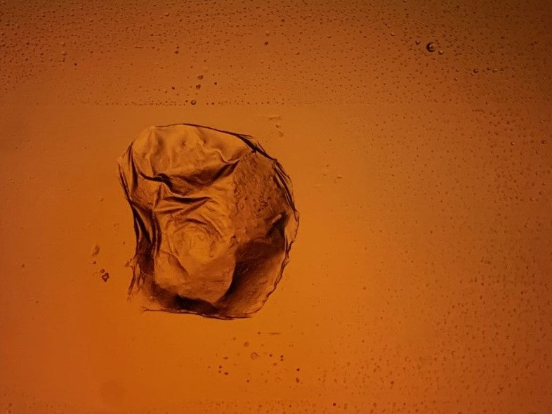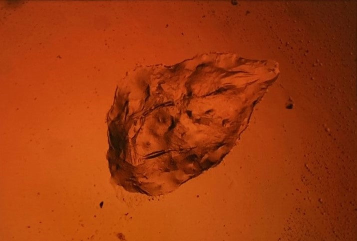 This is a tiny dot on microscope glass slide, smaller than 1.0 mm. Through my microscope the subject looks like a Heifer, and its facial expression also like “Mona Lisa”. It is an "unidentified art object“ on micro scenes.